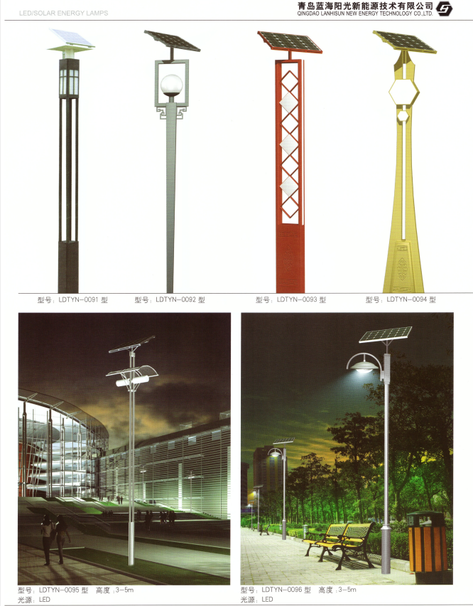? ? ? ?青島藍海陽光能源有限公司是一家集生產(chǎn)、設(shè)計、銷售、施工、售后為一體的服務(wù)性戶外照明公司;產(chǎn)品有:景觀燈、庭院燈、道路燈、玉蘭燈、中華燈、廣場燈、太陽能路燈、非標(biāo)定制燈型、草坪燈、柱頭...,公司從事戶外照明亮化產(chǎn)品十五載,落地項目幾百個,設(shè)計專項強、產(chǎn)品質(zhì)量可靠,具有專業(yè)的安裝施工隊伍,是高新技術(shù)企業(yè)、專
